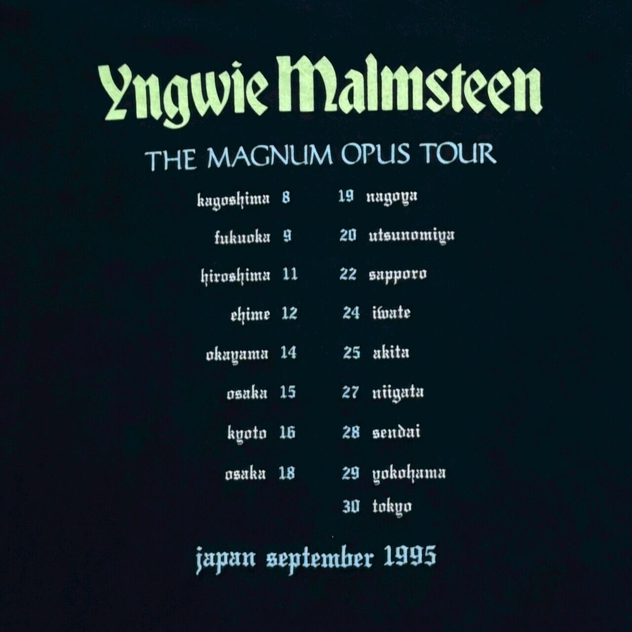 Yngwie Malmsteen(Yngwie Malmsteen)の"The Magnum Opus Tour(1995年)"で販売された、90年代ヴィンテージTシャツ。